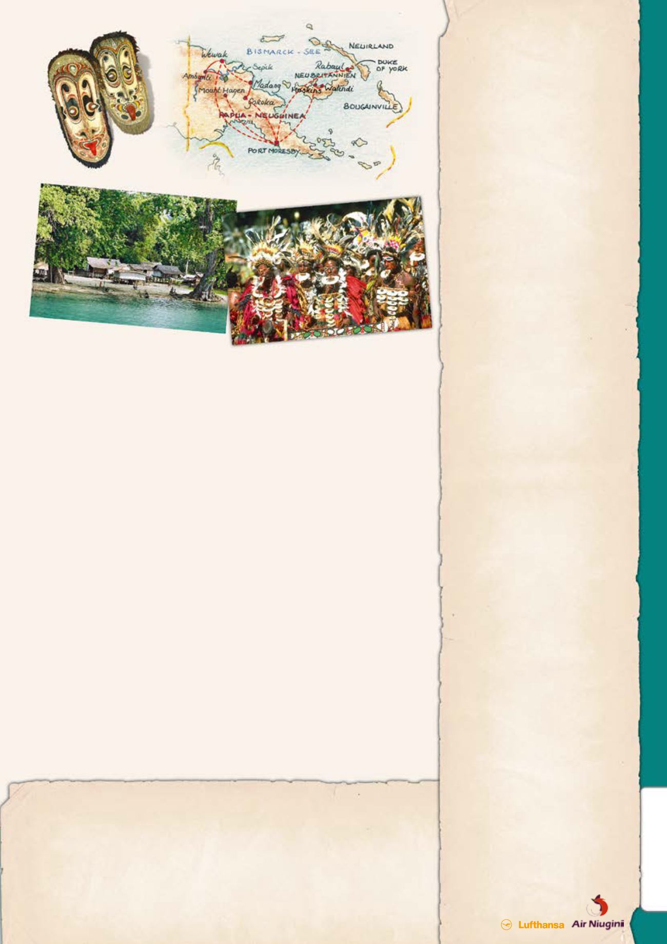 • internationale Flüge mit Lufthansa und Air Niugini