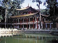 Wir nahmen den öffentlichen Bus und besuchten einen Markt in einem kleinen Dorf. Überwältigend - all diese Menschen, Gerüche und Farben! Unter der Leitung unseres chinesischen Führers besuchten wir einige authentische Bai Häuser. Wir aßen im islamischen Toko. Herrlich! Später fuhren wir mit einem Pferdekarren durch die Reisfelder zum Boot. Nach einer eindrucksvollen Fahrt über den Erhai See legten wir in der Nähe eines Dorfes an. Der durch die Rotgardisten zerstörte Tempel, wurde vom Geld der Dorfbewohner wieder aufgebaut.