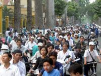 Wir laufen über Boulevards zum chinesischen Viertel Cholon, rechts und links Handwerksbetriebe, allerlei Läden, unglaublich viele Menschen, Fahrräder und Moped, woimmer man hinschaut. Scheinbar bewegen sie sich ohne jegliche Regeln. Doch langsam beginne ich die Grundregeln des Verkehrschaos zu verstehen: Eine rote Ampel bedeutet vorsichtig weiterfahren, grün bedeutet das selbe, oberstes Gebot ist allerdings nicht anzuhalten! Nach einem Besuch auf dem großen Markt von Cholon lassen wir uns mit einem Cyclo zum Hotel fahren, aber gewiss nicht ohne vorher den Preis ausgehandelt zu haben!