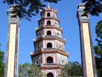 Wieder einmal stehen wir früh auf, denn es gibt viel Neues zu entdecken. Um 8:00 Uhr geht es mit dem Fahrrad los. Als erstes überqueren wir den ‚Fluss der Wohlgerüche’, um zur Thien-Mu-Pagode zu gelangen. In unmittelbarer Nähe befindet sich der Phuoc Duyen-Turm. Dieser achteckige Turm ist das inoffizielle Wahrzeichen von Hué. Nebenan in einer kleinen Garage wird der Selbstverbrennung des Mönchs Thich Quang Duc am 11. Juni 1963 gedacht, der sich aus Protest gegen die Verfolgung der Buddhisten zu jener Zeit selbst anzündete.