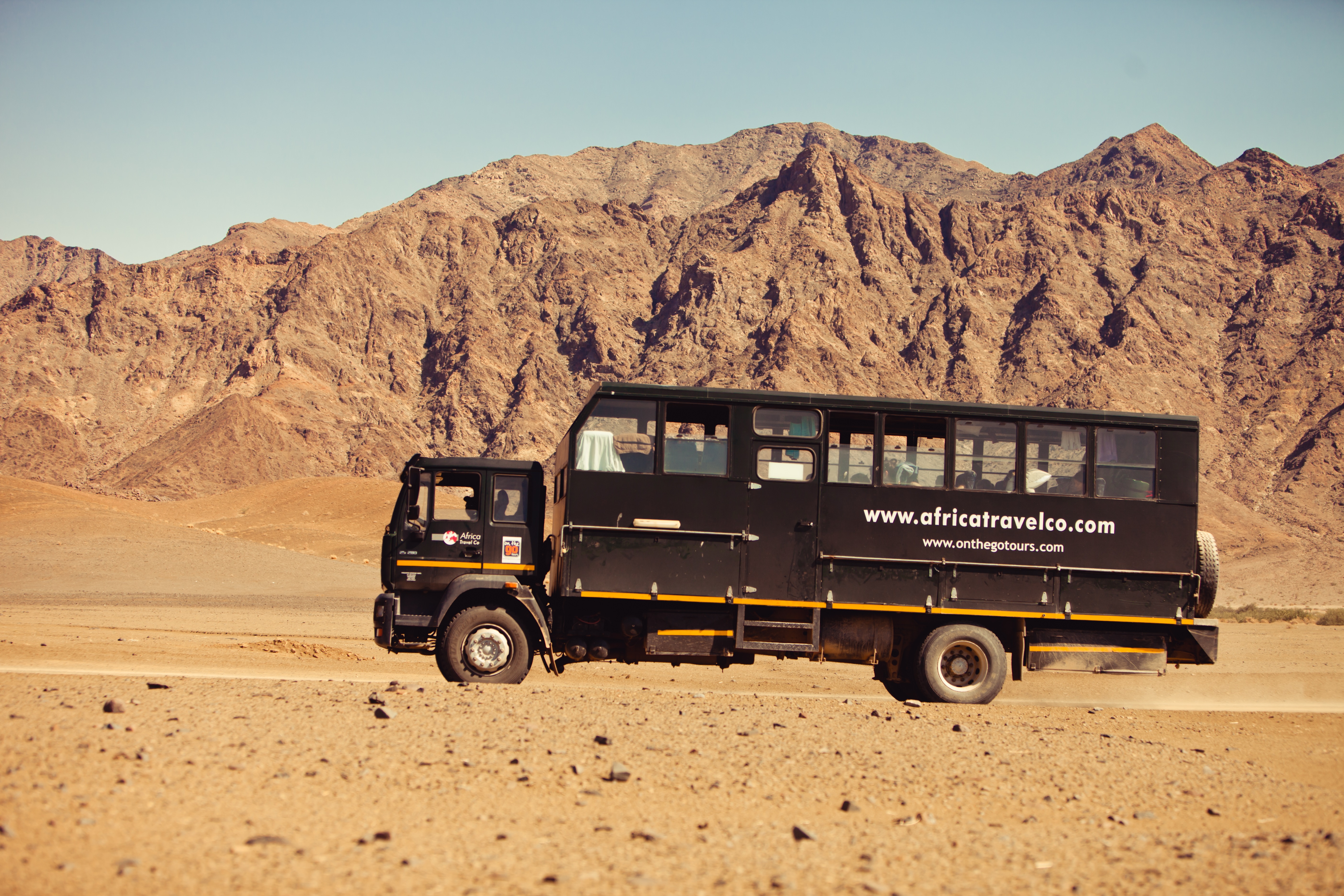 Auf unbefestigten Straßen unterwegs sein? Kein Problem für uns. Während unserer Erlebnisreisen im südlichen Afrika sind wir mit unserem Safaritruck bestens gerüstet. Dieses große und solide Geländefahrzeug bewältigt auch Strecken abseits asphaltierter Straßen. Die Passagierkabine befindet sich auf der ehemaligen Ladefläche des Trucks und bietet damit eine erhöhte Sitzposition, die zusammen mit den großen Fenstern eine gute Sicht ermöglichen. Erspäht bequem von eurem Platz aus die Big Five auf einer Safari. Bei unseren Campingreisen verwandelt sich der Safari-Truck in ein kleines Dorf auf Rädern. Alles, was wir auf einer Reise brauchen, wird bequem in Laderäumen verstaut. Von Kuppelzelten über Isomatten, Kochutensilien, Esstischen und Stühle: Alles hat seinen Platz. So können wir schnell unser Nachtlager an den schönsten Flecken inmitten der Natur errichten, flexibel überall picknicken und dennoch ein hohes Maß an Komfort genießen.