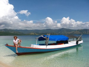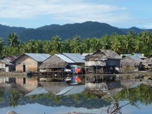 Am nächsten Morgen gegen 9:00 Uhr spazieren wir in fünfzehn Minuten zur Anlegestelle. Riung ist ein vom Tourismus nahezu unberührter Ort. Er besteht aus mehreren Pfahlbauhäusern,