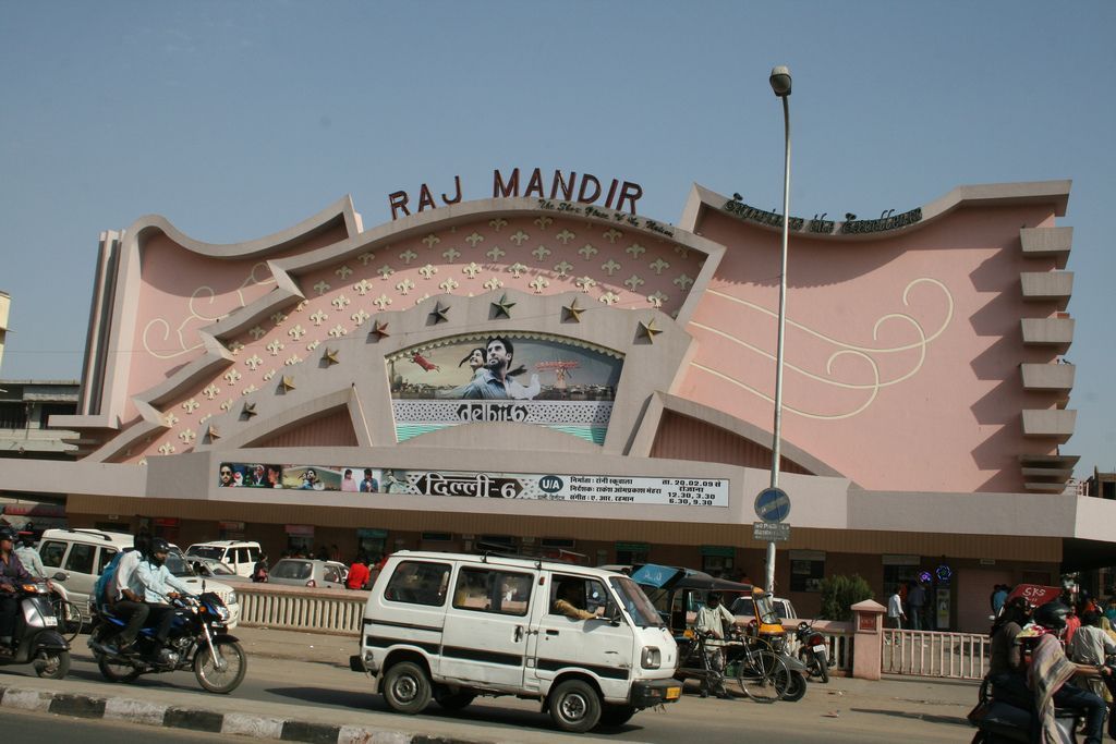 Bollywood selbst ist natürlich auch eine Fantasie-Geburt, ist es doch eine Wortschöpfung zwischen Bombay - heute Mumbai - und Hollywood. In Mumbai sitzen die großen indischen Produktionsfirmen. Hier wird mit Träumen und Sehnsucht inzwischen mehr Geld umgesetzt, als in der amerikanischen Traumfabrik. Raj Mandir-Kino Jaipur