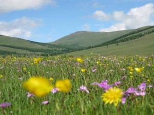 In der Provinz Bulgan, nordwestlich der Hauptstadt Ulan Bator (mongolisch: Ulaanbaatar), sind die Wiesen grün und saftig, karge Baumbestände wechseln sich mit sanft geschwungenen Hügeln ab. Die Frische kommt nicht von ungefähr: Es regnet viel und mancherorts wähnt man sich in irischen Gefilden. Im Hunnental in der Arkhangai-Provinz, das sich südlich zieht, erlebt man die Mongolei, so wie man es sich als Europäer erträumt hat: Ein Fluss durchfließt das Tal, wie ein Band schlängelt er sich durch die grüne Landschaft.