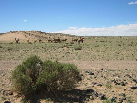 Fährt man noch weiter in den Süden, kommt man langsam aber sicher in das Gebiet der Gobi. Sichere Anzeichen sind die ersten Kamele, die durch die karge Steppe streifen. Die Mongolen benutzen den Begriff “Gobi” nicht für eine bestimmte Region, sondern bezeichnen damit einen bestimmten Landschaftstypus: Der Begriff “Gobi” bezeichnet eine trockene Wüstensteppe oder eine Fels- und Geröllwüste.