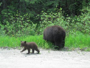 Aber gewirkt hat es, ich bin keinem Bären auf meiner Wanderung begegnet – wurde aber am folgenden Tag auf einem Ausflug mit dem putzigen Anblick dieser Braunbärenmama und ihrem Baby belohnt, die genüsslich die Köpfe der Löwenzahn-Pflanzen mampften und sich von uns dabei nicht stören ließen. Neben Beeren ganz sicher das liebste Fastfood der kanadischen Bären.Canada_Schwarzbär mit Baby_Denise_FOC