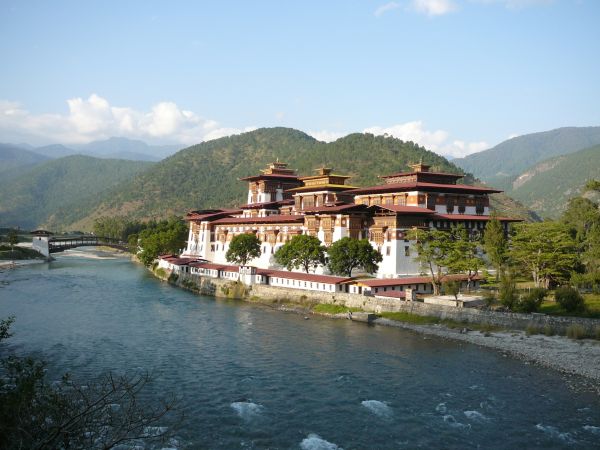 "Der Palast der Glückseligkeit" liegt am Zusammenfluss des Pho Cchu und Mo Cchu inmitten des Punakha-Wangdue-Tals. Er ist einer der größten und ältesten Dzongs Bhutans und sollte auf jeden Fall besichtigt werden. Seine Lage macht ihn besonders, da die anderen Klosterburgen zumeist auf einer Anhöhe liegen und nicht im Tal. Die Größe und Pracht des Punakha Dzong ist unbeschreiblich: von außen wirkt er imposant und sein inneres glänzt mit kunstvollen Schnitzereien, heiligen Schreinen und herrlichen Innenhöfen.