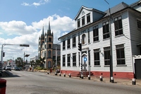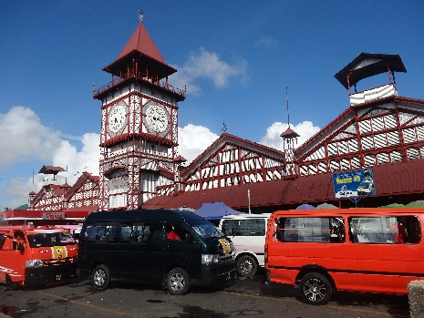 IStabroek Marketn Georgetown selbst können wir uns die St. George's Cathedral, eine der größten Holzkirchen der Welt, ansehen, den wuseligen Stabroek Market durchstöbern sowie das National Museum und die davor liegenden kleinen Stände mit typischen Souvenirs aus Guyana. Zum Sonnenuntergang lohnt ein Abstecher zur Seawall, wo sich verliebte Pärchen, Großfamilien und Freunde an der Uferpromenade treffen, um den Abend zu begrüßen. Dann heißt es schon wieder Abschied nehmen von Guyana und wir fahren zurück nach Suriname.