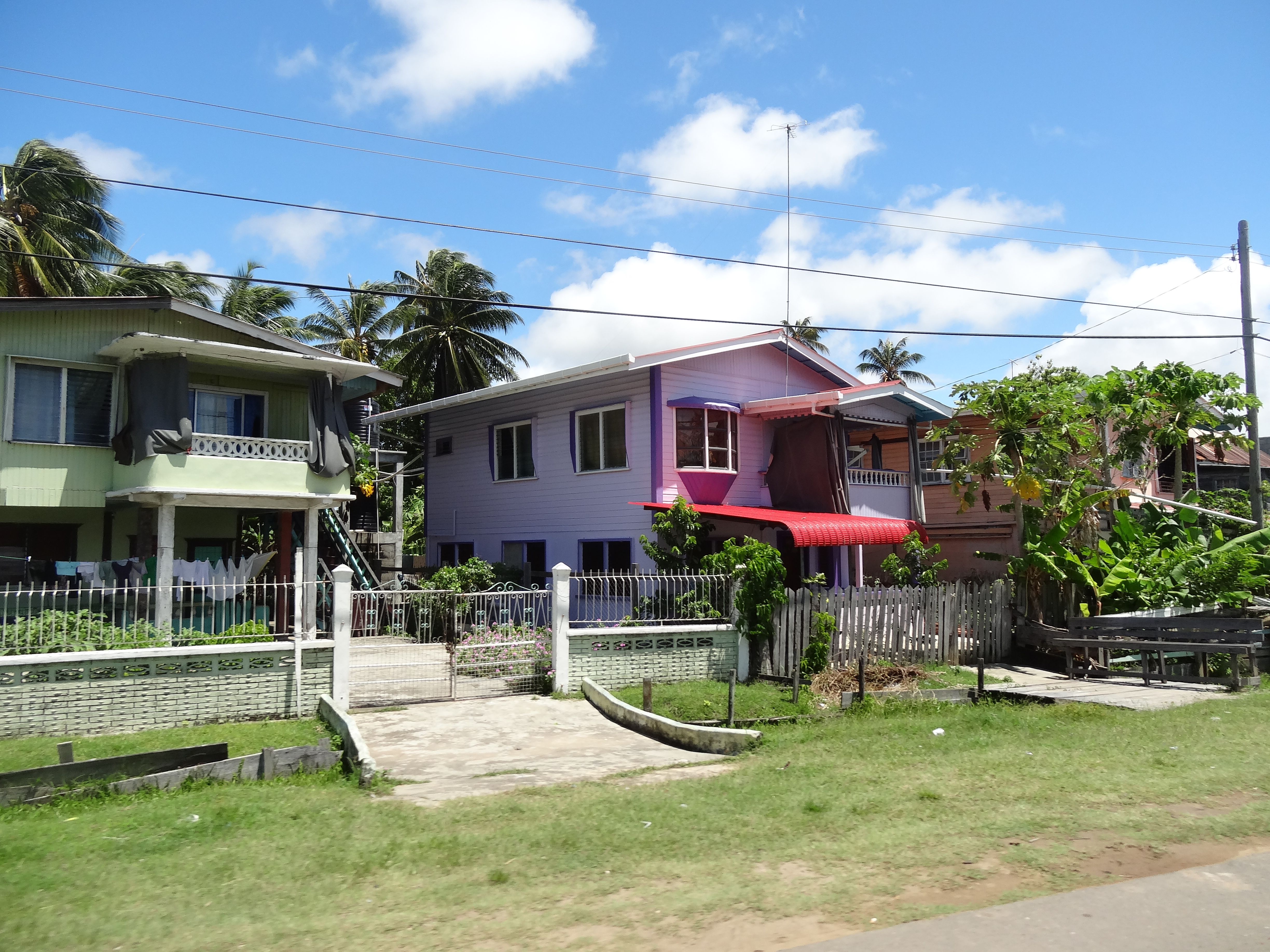 Schnell wird man die Unterschiede zwischen Suriname und Guyana bemerken. Die Sprache verändert sich, denn hier spricht man Englisch, man bezahlt mit dem Guyana-Dollar und das Leben scheint hier ein wenig karibischer geprägt zu sein. Wir setzen unsere Fahrt nach Georgetown fort und passieren dabei unzählige kleine Dörfer, die ungewöhnliche Namen wie "Friendship" oder typisch englische Namen wie "Brighton" oder "Waterloo" tragen. Links und rechts sind die vorbeiziehenden Straßenränder von Holzhäusern auf Stelzen, Hindutempeln, christlichen Kirchen, geschäftigen Einwohnern und nicht zuletzt von entspannten Kühen, Schweinen und Eseln gesäumt.