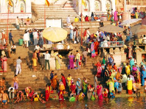 Nach einer Busfahrt durch landschaftlich reizvolles Gebiet erreichen wir Varanasi, die ‘ewige Stadt’, auch Benares genannt. Es ist heiligster Pilgerort der Hindus und seit 2.500 Jahren das religiöse Zentrum des Landes. Von der Stadt führen Stufen hinab zu den Fluten des Ganges: zu den mehr als hundert Ghats, in denen Tausende von Pilgern täglich ihre religiösen Waschungen vornehmen. Eine Bootsfahrt am Abend auf dem heiligen Fluss wird bestimmt einer der nachhaltigsten Eindrücke sein, die ihr aus Indien mitnehmen werdet. Mit Öllampen, Räucherstäbchen, Blumenopfern und Gebeten verehren hinduistische Priester während der Aarti Pooja am Dashashwamedh Ghat das Feuer.
