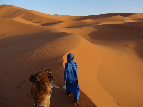 Am besten lässt sich die weite Dünenlandschaft vom Rücken eines Kamels erkunden, das euch wiegenden Schrittes auf die höchsten Sandberge trägt. Von hier aus den Sonnenaufgang oder -untergang zu beobachten, ist ein unvergessliches Erlebnis! Wer nachts ein paar Schritte aus seinem Zelt tritt, kann den unglaublich klaren Sternenhimmel über der stillen Wüste bewundern.