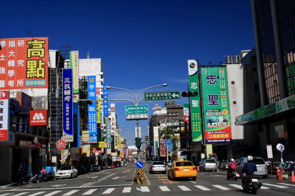 Xiemending, Taipeh, bunt, Geschäfte, MenschenWir landen in der Hauptstadt Taiwans, Taipeh, deren Skyline aufgrund der vielen Wolkenkratzer, die diese Stadt besitzt, überwältigend wirkt. Seit den 70er Jahren des letzten Jahrhunderts hat sich Taipeh rasend schnell zu einer modernen Großstadt mit zahlreichen hohen Wolkenkratzern aus Glas und Stahl entwickelt. In dieser Millionenstadt schreiben 24 Stunden am Tag grellbunte Leuchtreklamen unlesbare chinesische Schriftzeichen an Häuserfronten und Giebel.