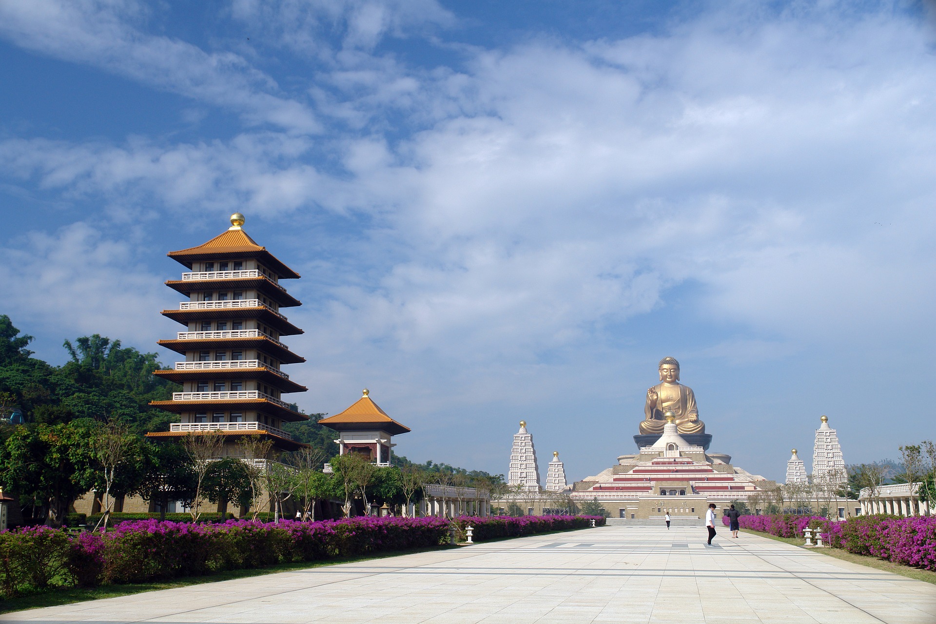 Kloster, Mönche, Buddah, Pagode, FoguangshanAuf dem Weg zum Foguangshan-Kloster machen wir Halt am Checheng Fuan-Tempel, der vor 200 Jahren erbaut wurde und als der größte Tempel Taiwans gilt, in dem man Tu Di Gong verehrt, den Gott der Erde oder den Gott der Tugend und des Glücks. Der Tempel wurde einst für die Pioniere vom chinesischen Festland erbaut, um ihr Heimweh zu lindern.  Am Abend erreichen wir schließlich das buddhistische Foguangshan-Kloster, welches 1967 von Abt Hsing Yun gegründet wurde, um dort zu nächtigen. Bei der Ankunft wird euch direkt die kolossale, 32 m hohe, goldene Buddhastatue ins Auge springen, die jeden Gast zu begrüßen scheint. Wir übernachten auf dem Gelände des Klosters um früh am nächsten Morgen den faszinierenden Zeremonien beiwohnen zu können.