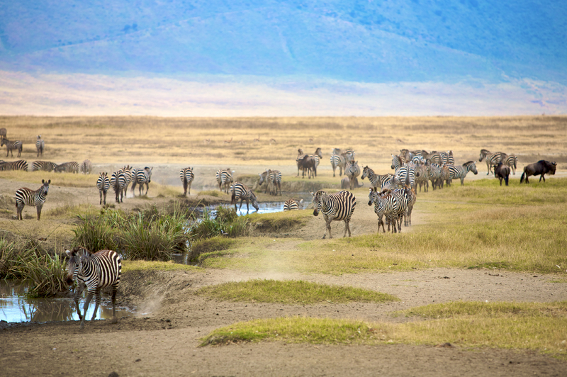 • Eintritt und Jeepsafari im Ngorongoro Krater: Wir werden mit kleinen Geländewagen in den Krater hinunterfahren. Aufgrund des allgegenwärtigen Wassers sind hier immer viele Tiere anzutreffen, wie Gnus, Zebras, Impalas, Flusspferde, Hyänen, Elefanten und Löwen.