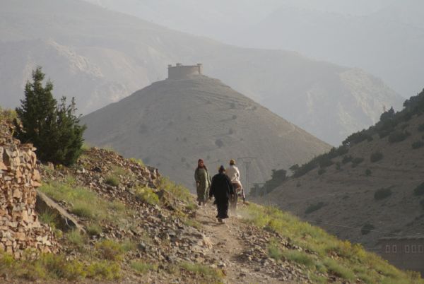 Hoher Atlas, Bewohner, Marokko, marokko wandernWir machen uns auf dem Weg entlang malerischer Pfade, die sich durch die atemberaubende Landschaft des Bougoumez-Tals schlängeln. Auf unserem Weg von Dorf zu Dorf flankieren Getreide-, Mais- und Kartoffelfelder unsere Route, während Walnuss- und Apfelbäume uns einen natürlichen Schatten spenden. Während unserer Wanderung erleben wir das lebhafte Treiben des täglichen Lebens: Männer arbeiten auf den Feldern, an den Flüssen waschen bunt gekleidete Frauen ihre Wäsche, und Kinder sammeln eifrig Brennholz. Immer wieder beeindruckt uns die besondere Architektur der Berber, deren Lehmhäuser teils mehr als 20 Meter hoch in den Himmel ragen. Nach etwa fünf Stunden zurückgelegter Strecke kehren wir schließlich nach Ikfn N'Ighir zurück.