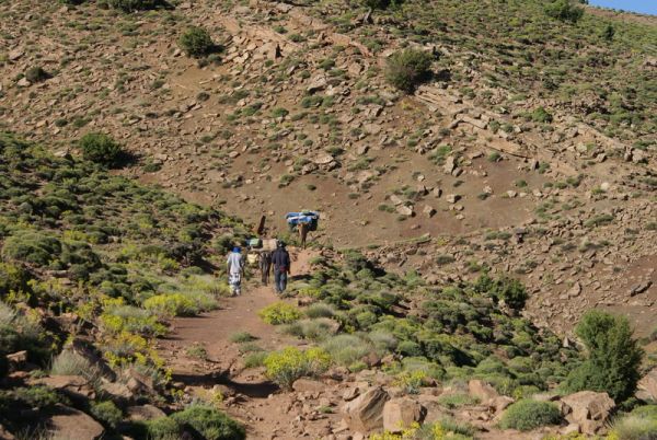 Hoher Atlas, Natur, Wanderpfad, marokko wandernDas Ziel unserer nächsten Wanderung sind die charmanten Dörfer Adazen, Ibaklioun und Aït Imi. Diese Dörfer sind bekannt für ihre traditionelle Architektur und die herzliche Gastfreundschaft der Bewohner. Während eures Rundgangs erlebt ihr die einzigartige Lebensweise der Einheimischen und erkundet die kunstvoll gepflegten Terrassenfelder, die sich wie grüne Teppiche über die Hügel ziehen. Die Dörfer laden dazu ein, mehr über die Kultur und Bräuche der Halbnomaden, die hier leben, zu lernen und schaffen einen authentischen Einblick in das alltägliche Leben in den Berberdörfern.